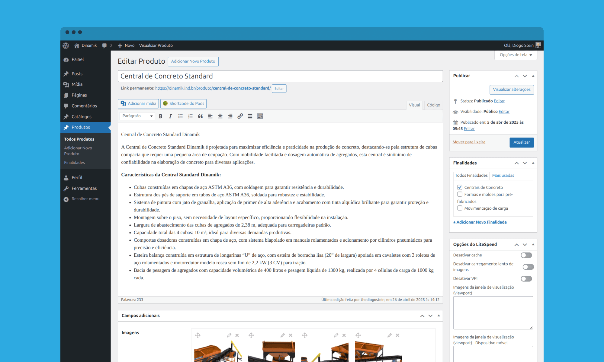 I designed and developed Dinamik’s corporate website, a company specialized in solutions for the construction products sector, with a strong focus on usability, content organization, and autonomy for the internal team. The project included a custom product management area built using custom fields, enabling the marketing team to easily add and update products without technical assistance. The responsive layout was carefully crafted to match the brand’s visual identity. The result is a professional, functional website built to scale with the company’s growth.
